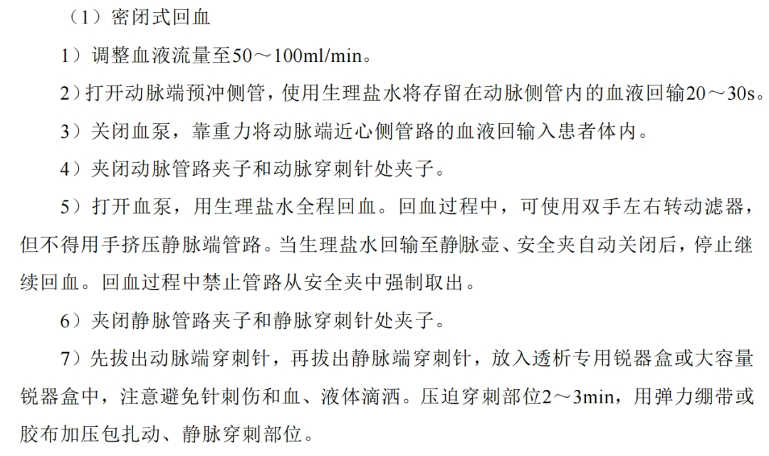 卸除灌流器時的一系列操作不可馬虎,《血液凈化標準操作規程2021》推薦密閉式回血,正確的操作步驟如下: