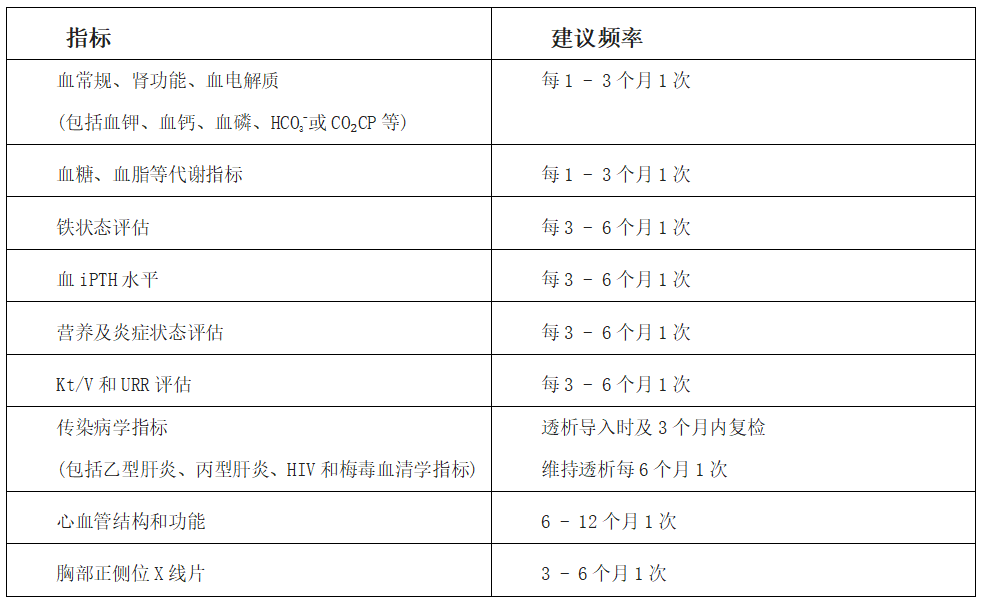 表1 血液透析患者常規(guī)檢查指標(biāo)及檢查頻率