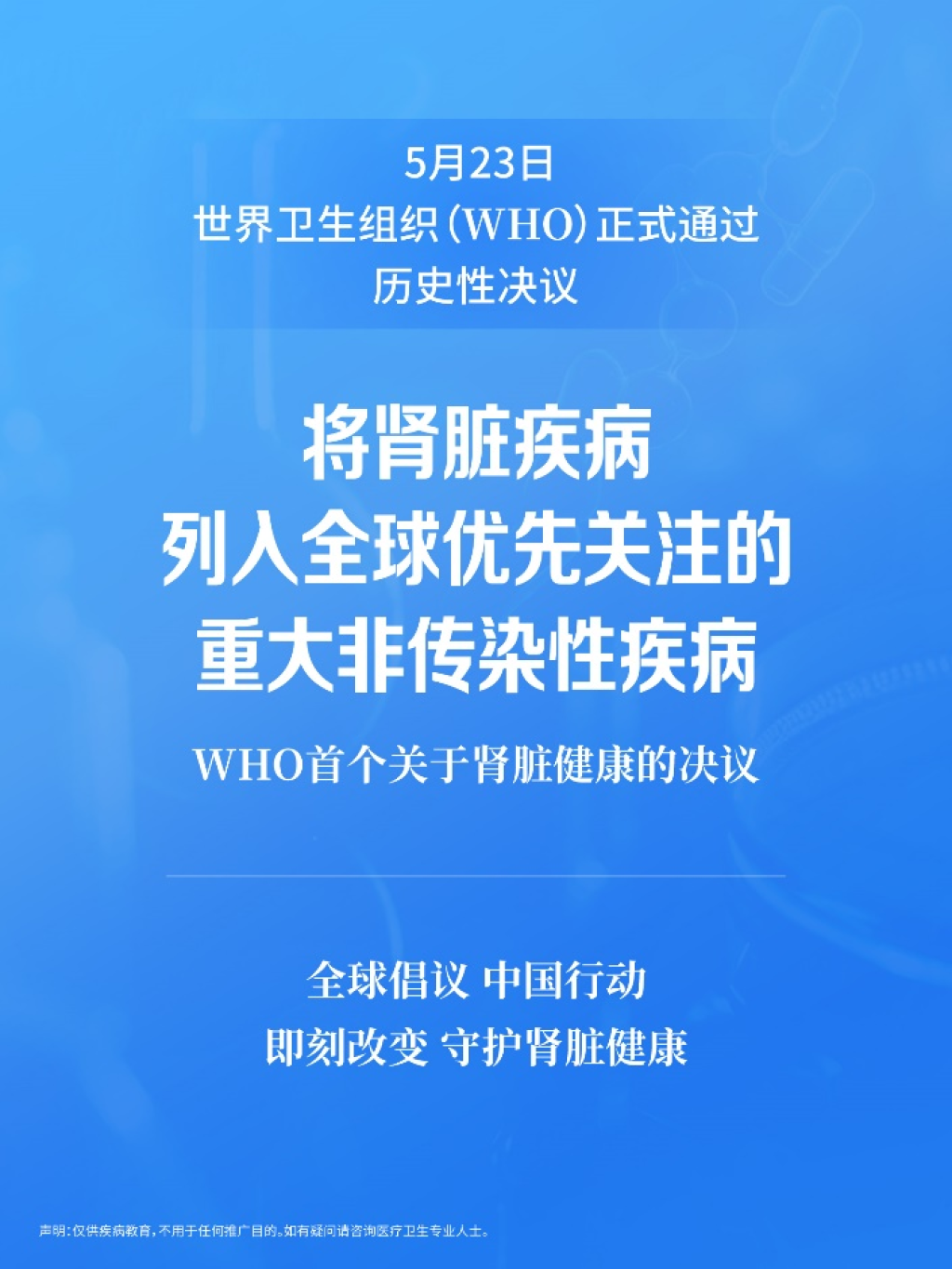 日前,第78屆世界衛生大會于瑞士日內瓦召開。會議通過了題為“通過促進腎臟健康和加強腎臟病預防與控制來減輕全球非傳染病疾病負擔”的決議,將腎臟疾病列入全球優先關注的重大非傳染性疾病。